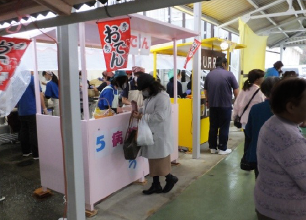 当院では季節にあったレクリエーションや運動会、お祭りなどの行事を催しています。節分やクリスマス会では、職員が鬼やサンタクロースに仮装し、会場を盛り上げます。運動会やお祭りでは患者様と職員も童心に返り、一生懸命走ったり、屋台を楽しみます。